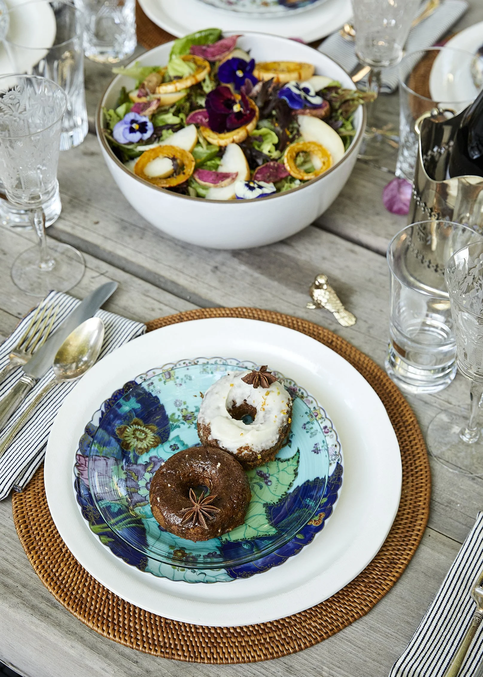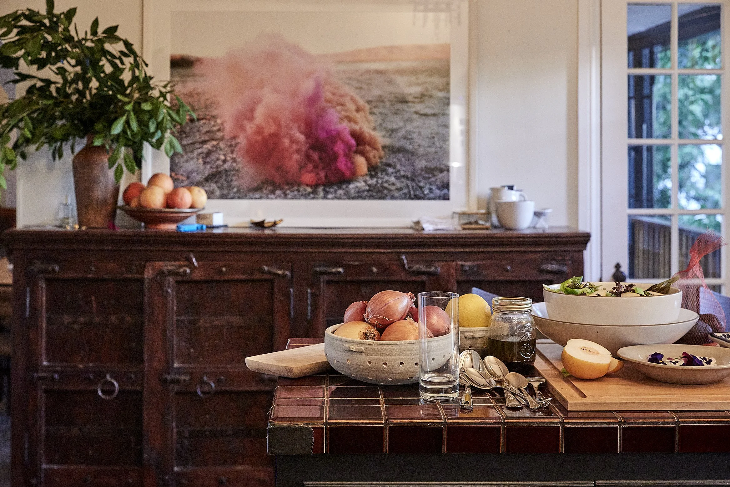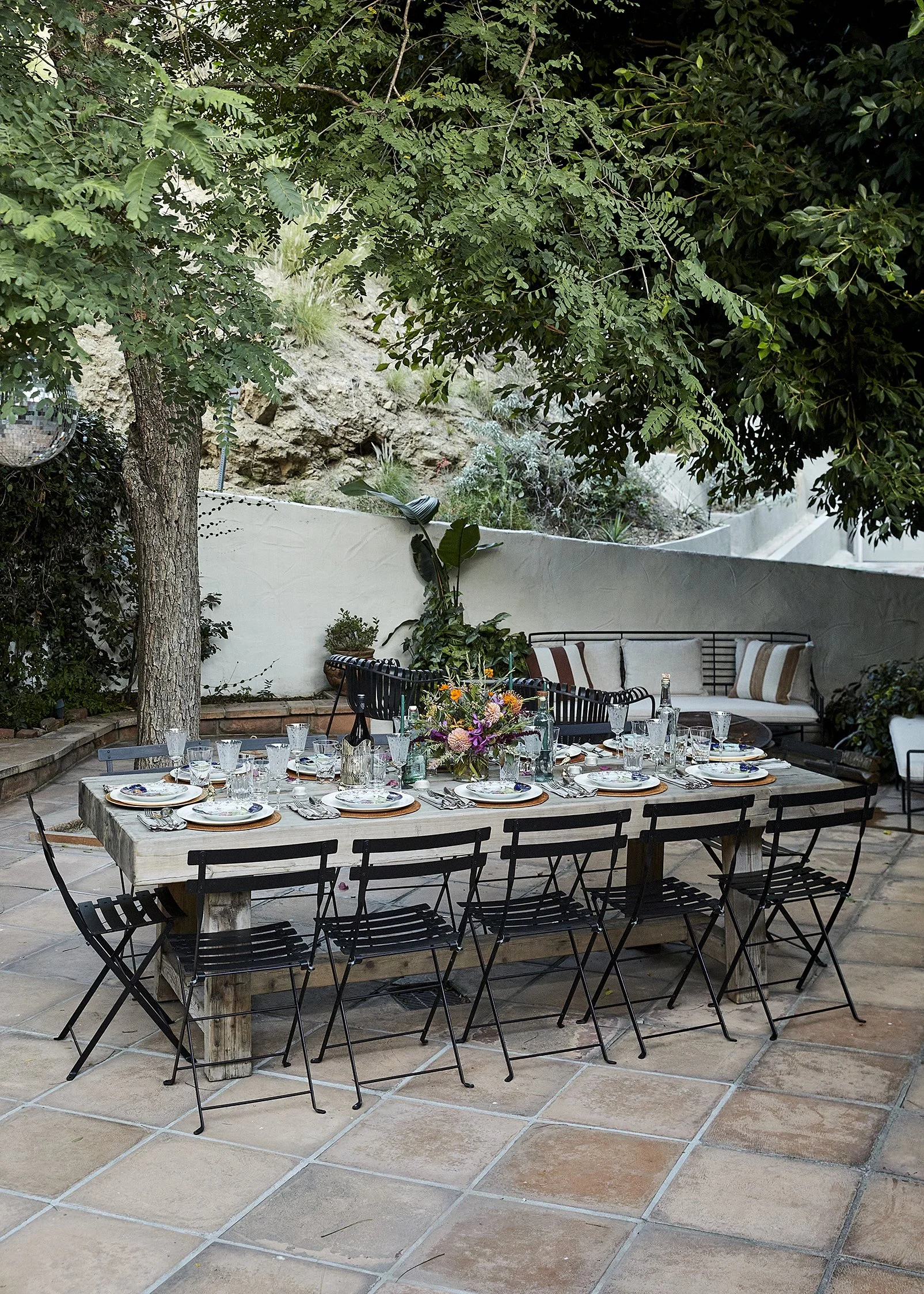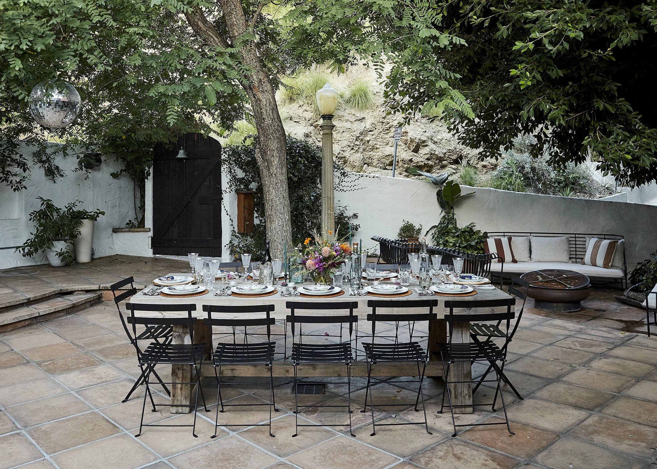 I met Law (Elizabeth Law for long, but she goes by Law) back in 2018 when Lonny came to me and asked me to shoot her super cute bungalow in West Hollywood, and we’ve been friends and worked together ever since. Over the years we’ve learned we share a lot of the same passions and interests and connections - historic homes, all things New Mexico, growing up in the south (me in Florida, Law in South Carolina), a deep love for gathering and feeding people, a passion for cooking and locally sourced seasonal food (and farmer’s markets) and of course design and collecting and sharing beautiful things. We also realized that we both have incredible networks of amazing humans both here and in New Mexico, and strangely, while our outer network circles were close to the same orbit, our inner circles never seemed to overlap. A few months ago, after we finished shooting her house (stay tuned for that being published soon!!!) Law came to me and asked if I wanted to start doing a collaborative dinner party series with her. She had designed her patio with a beautiful wood dining table that seats 12 and had a collection of pieces just waiting to be used for feasts.